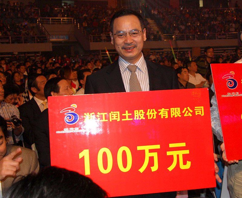 10月11日,阮加春總經(jīng)理在第八屆全國殘運(yùn)會(huì)倒計(jì)時(shí)一周年大型愛心助殘晚會(huì)上接受中國殘聯(lián)主席張海迪(坐輪椅者)頒發(fā)“愛心企業(yè)”獎(jiǎng)牌。浙江省省長(zhǎng)呂祖善等領(lǐng)導(dǎo)出席了本次活動(dòng)。